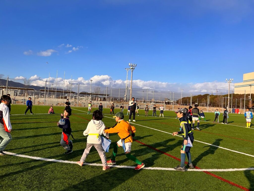 当日は、寒さを吹き飛ばすような熱気に包まれ、合計44名の参加者が集まりました。子どもから大人まで、ラグビーに興味を持つ多くの方々が一緒に楽しみました。ボールを使った様々な練習や、腰に付けたタグを取り合うゲームなど、活気に満ちたプログラムが用意されていました。